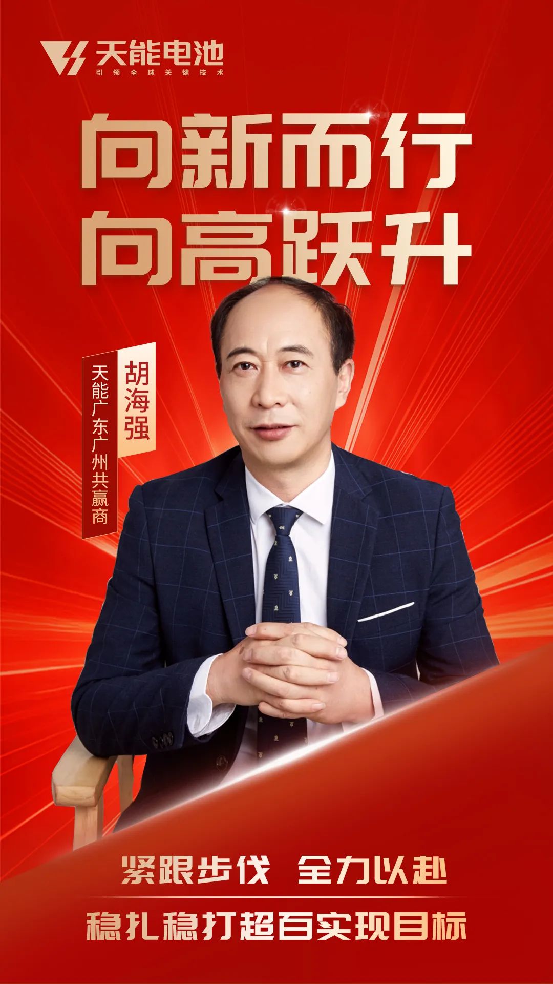 胡海强,广州共赢商,在天能电池销售领域深耕22年。他从最初的夫妻店到如今服务1300余家终端客户,从拓荒到如今市场占有率65%以上,从月销百组到如今20多万只,一路紧跟天能步伐,不断创新,高效打造营销团队,连续多年销量全国第一。