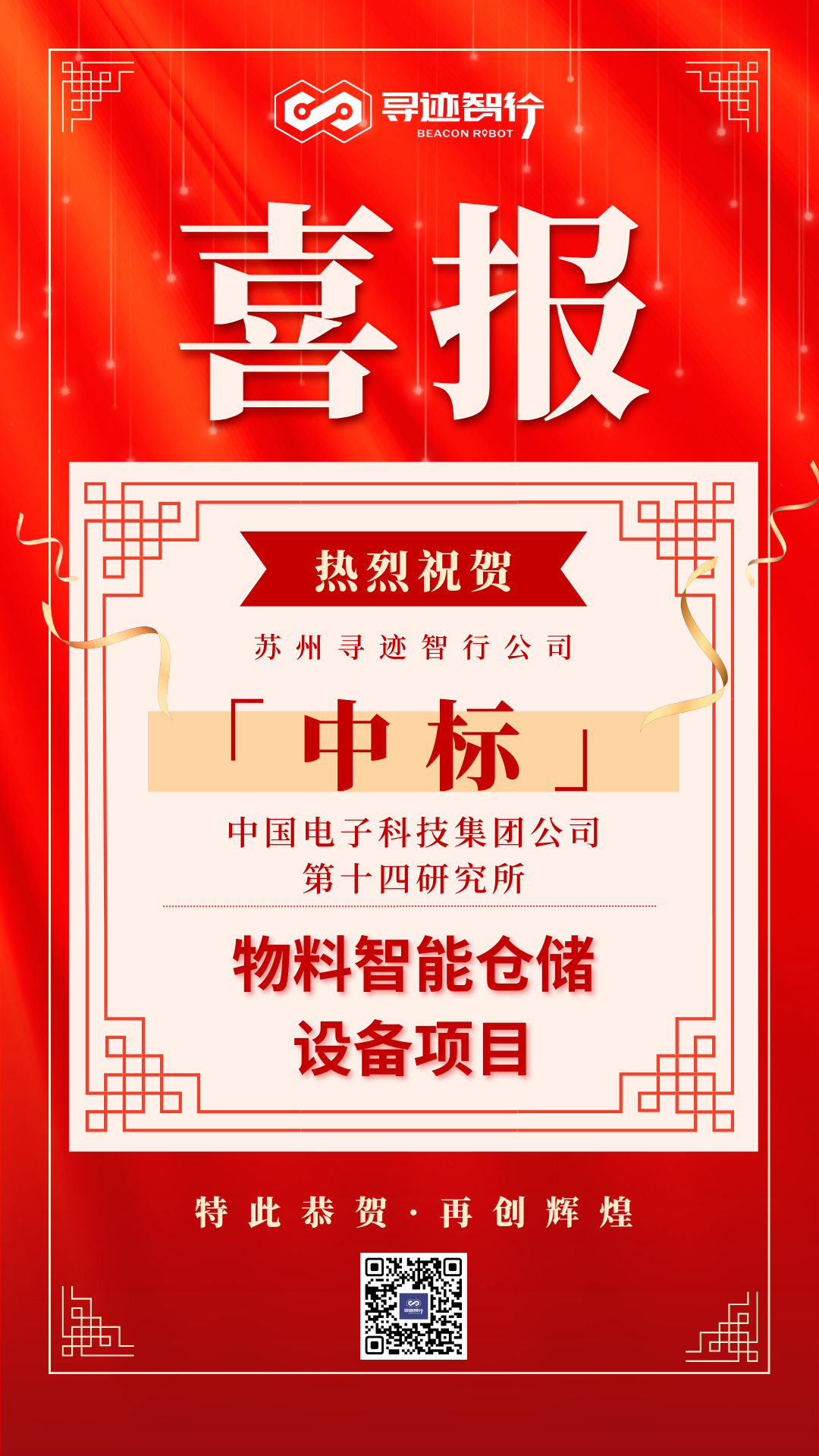 近日,苏州寻迹智行机器人技术有限公司(以下简称“寻迹智行”)成功中标中国电子科技集团第十四研究所的物料智能仓储设备项目,标志着公司在智能仓储领域的技术实力和解决方案能力再次获得行业认可。