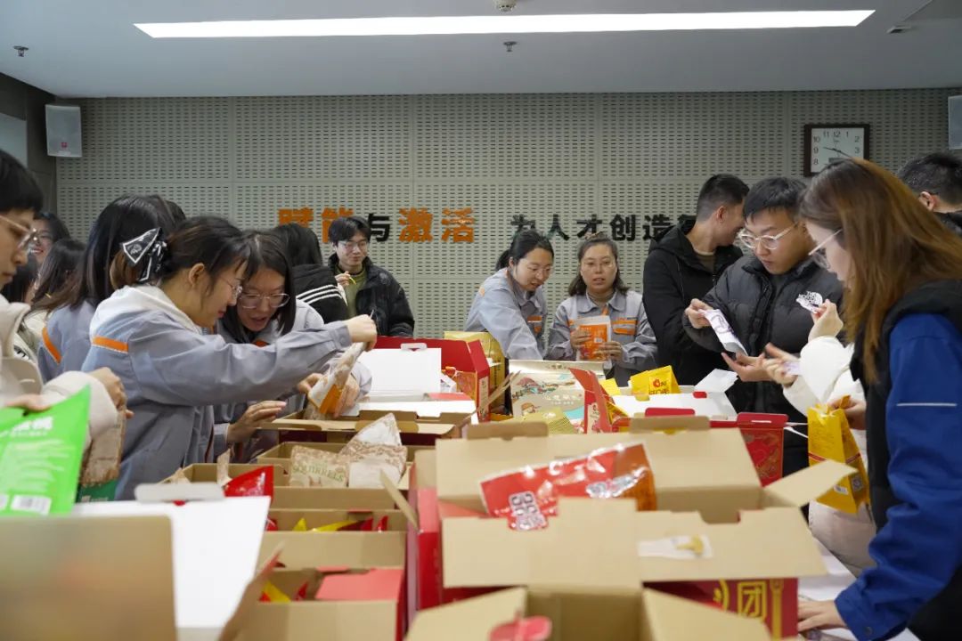 在装箱环节,装箱团队更是倾注了大量心血。他们不仅将每一件商品仔细打包,还特意在箱内放置了新春福贴以及满载感激之情的一封信。每一份包裹都经过精心设计和打包,旨在让员工父母在收到礼物时能够感受到来自公司的温暖与尊重。