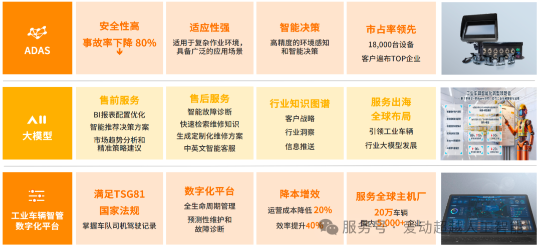 爱动作为本次入选的其中一员,始终坚持技术自主研发,创新研发出基于人工智能的工业车辆工业互联网平台,首个将结合了AI、IoT、大数据等技术的解决方案在工业车辆领域产业化落地,首次将5G redcap技术应用在工业车辆数据传输中,极大提升了数据采集、传输和边缘计算能力,实现了工业车辆多源异购数据协议解析,工业数据价值挖掘,全生命周期设备管理,智能化预测性维护,工业车辆设备主动安全等能力。 大模型方面,爱动利用深耕7年之久的行业知识和行业数据,持续引领大模型为方向的工业车辆智能化创新。爱动在工业车辆行业基于大模型的多模态RAG+Agent产品,实现智能问答和运维服务,服务全球顶级工业车辆制造企业。成为了国内第一家工业车辆行业大模型成功落地的公司。这一发展趋势也与德勤中国高科技高成长50强本年度项目主题“逐新求质,超越增长”相契合。