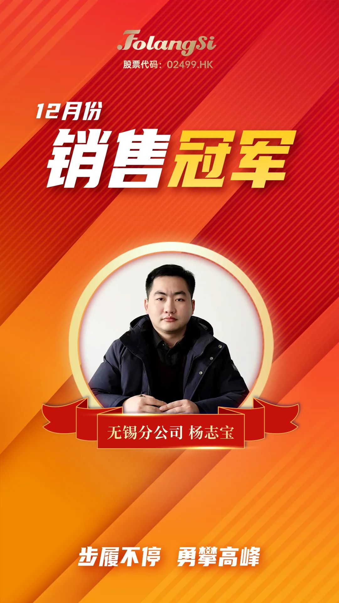 冬日的阳光透过薄雾,金色的光辉与寒风中的坚韧交相辉映,仿佛预示着不平凡的时刻即将来临。在这片充满希望的土地上,每一位佛朗斯人都怀揣着梦想与激情,共同书写着属于他们的辉煌篇章。佛朗斯股份无锡分公司杨志宝,凭借超凡的销售业绩和不懈的努力,荣膺国内事业2024年12月销售冠军,为佛朗斯的收官之战再添辉煌的一笔。
