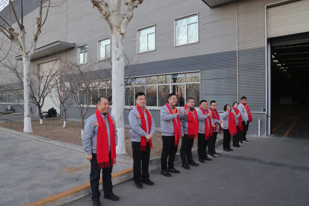 事业部管理团队在车间门口向早早到岗同事送去新春祝福,期望大家在新的一年里事事顺遂,巳巳如意!