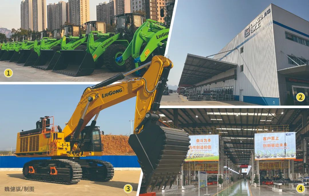 图①柳工电动装载机 图②柳工挖掘机智慧工厂 图③柳工挖掘机 图④柳工挖掘机智慧工厂生产车间 张美娜/摄