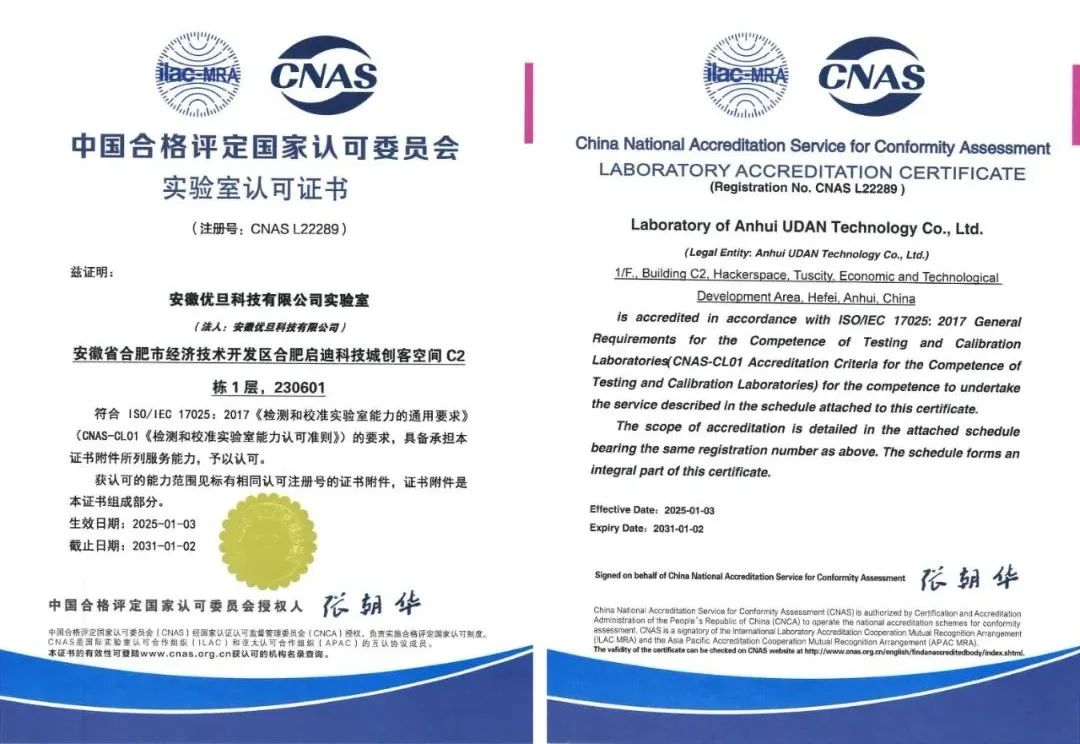 喜报 | 优旦科技卓越实验室通过CNAS认可