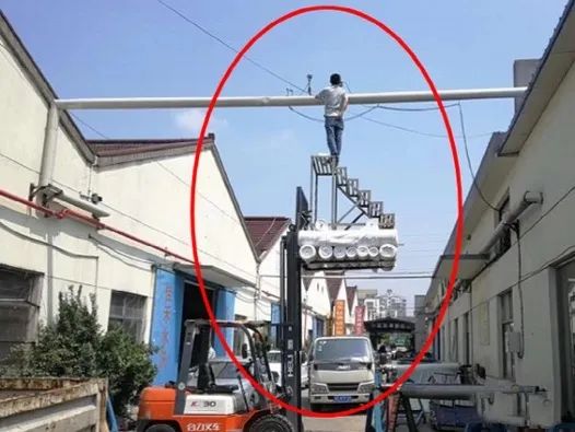 在一些需要进行高空作业的场景中,有些叉车司机为了省事,直接将货叉当作云梯,站在货叉上进行高空作业。这种行为是极其危险的,因为货叉并非专门的登高设备,没有任何防护措施,一旦发生意外,后果不堪设想。