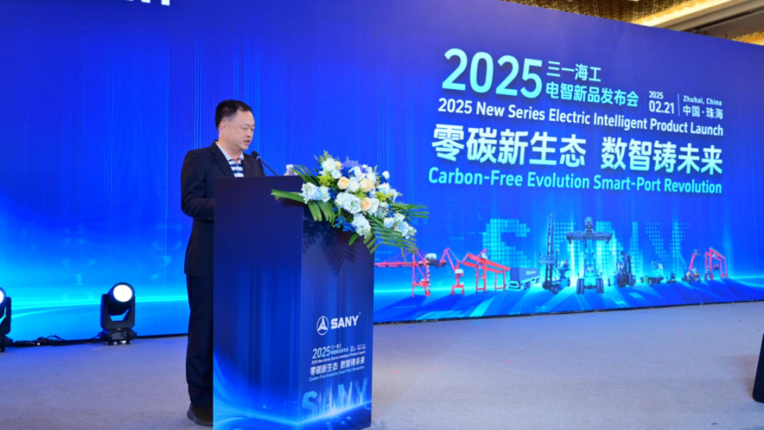 三一集团高级副总裁、三一海工董事长伏卫忠致辞:“感谢大家出席三一海工全系电动产品升级发布会。今天,我们以‘电智共生’为核心,隆重发布2025款产品,从1.0时代的‘油转电’,到2.0时代的能效革命,再到3.0全场景电智融合,三一让设备从工具进化为智能终端,重新定义生产力。向新而行,永无止境,希望与全球港口一起携手,以智电之光点亮绿色未来”