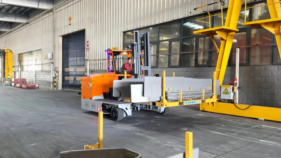 普通叉车搬运重型长物料时,需要多次调整方向,操作繁琐、难度高且存在安全隐患;