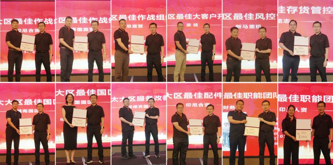 对2024年度作战及平台团队表彰,将会议气氛推向高潮。这些团队凭借卓越的执行力和创新精神,在过去一年取得了亮眼成绩,为三一亚太在主机/配件销售、风控管理、存货管理、服务改善、职能建设等方面做出了突出贡献,三一亚太大区事业部董事长黄建峰为他们颁发了荣誉证书,并勉励全体成员在新征程中向标杆看齐,2025勇攀高峰,追求卓越。