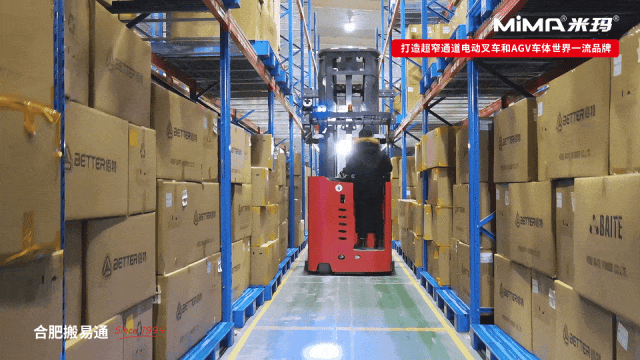 MiMA MC12额定载重1.2吨,最大起升高度9米,最窄作业通道仅需1.5米,充分利用仓库横向空间与垂直空间,以较低仓储成本实现高密度存储,为企业后续业务拓展提供充足的仓储空间。