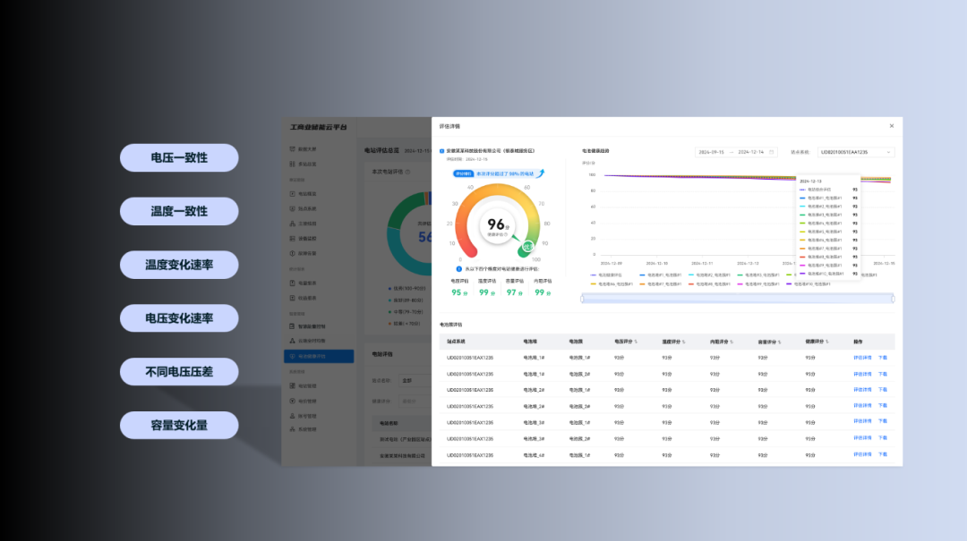 电池价值评估:通过机器学习技术,打造了全新的电池健康评估模型,替代传统SOH评估方案。该模型基于电压、温度一致性、变化速率等6个维度提取特征,并通过正态分布拟合优化,提供精准的电池价值评估,助力储能系统的运维与资产管理。