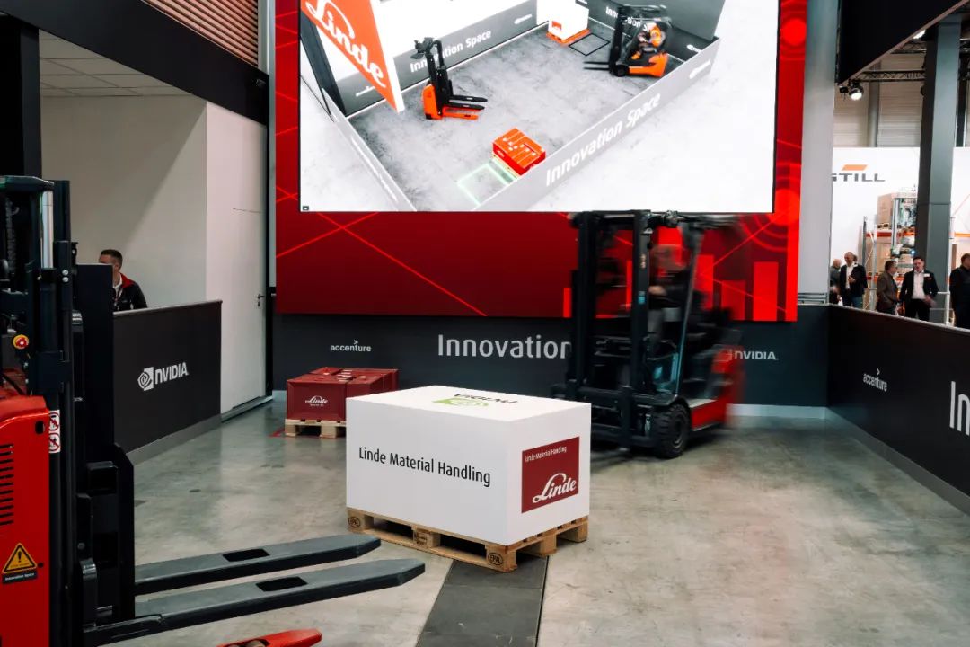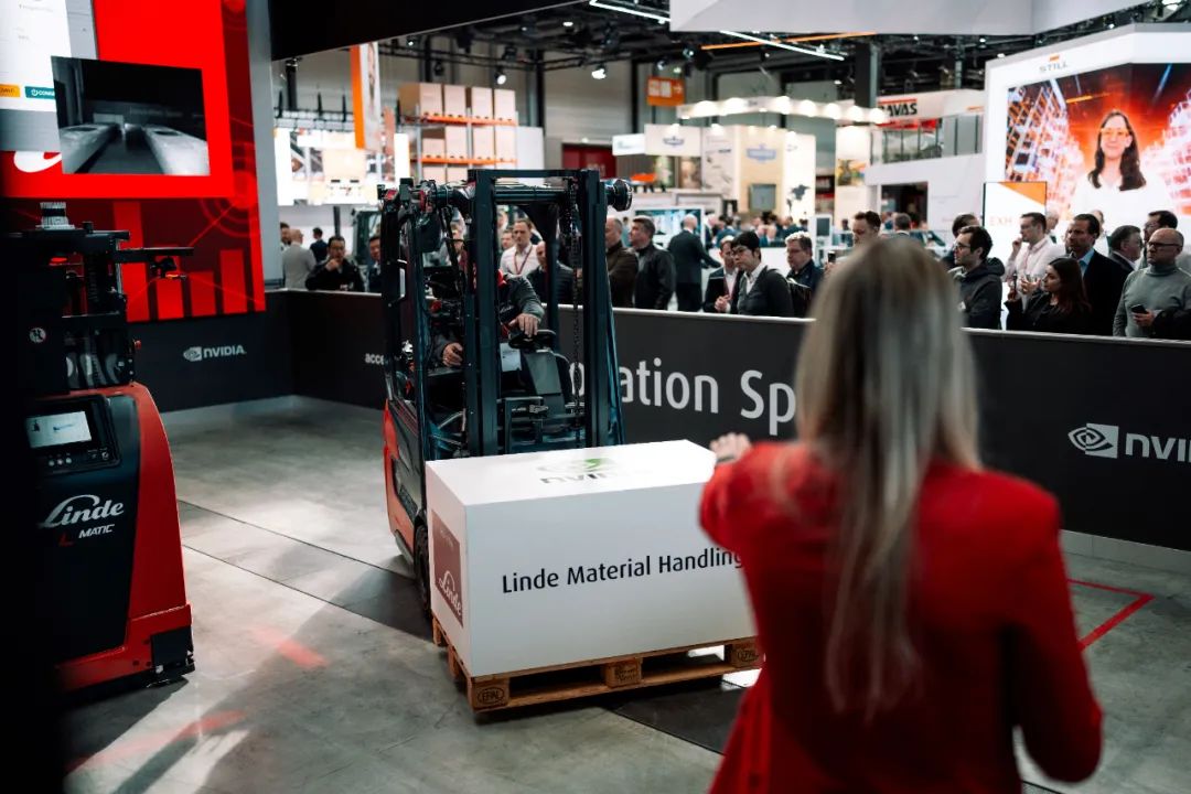 在LogiMAT展会上,凯傲集团子公司林德物料搬运展示了一套完全集成的货物入库解决方案,包括一台自主移动机器人(AMR)和一辆手动叉车,两者均采用人工智能技术。该解决方案在英伟达的Omniverse中以数字化形式呈现,可显示叉车的实时定位。车载和固定摄像头在英伟达硬件上运行,可捕捉和处理实时操作数据。整个解决方案在不断发展变化的模拟环境中运行,为大规模优化车辆协调和路线规划做好准备。此外,叉车还具备应用程序功能,能够持续升级软件,增强人员识别和避障等功能。