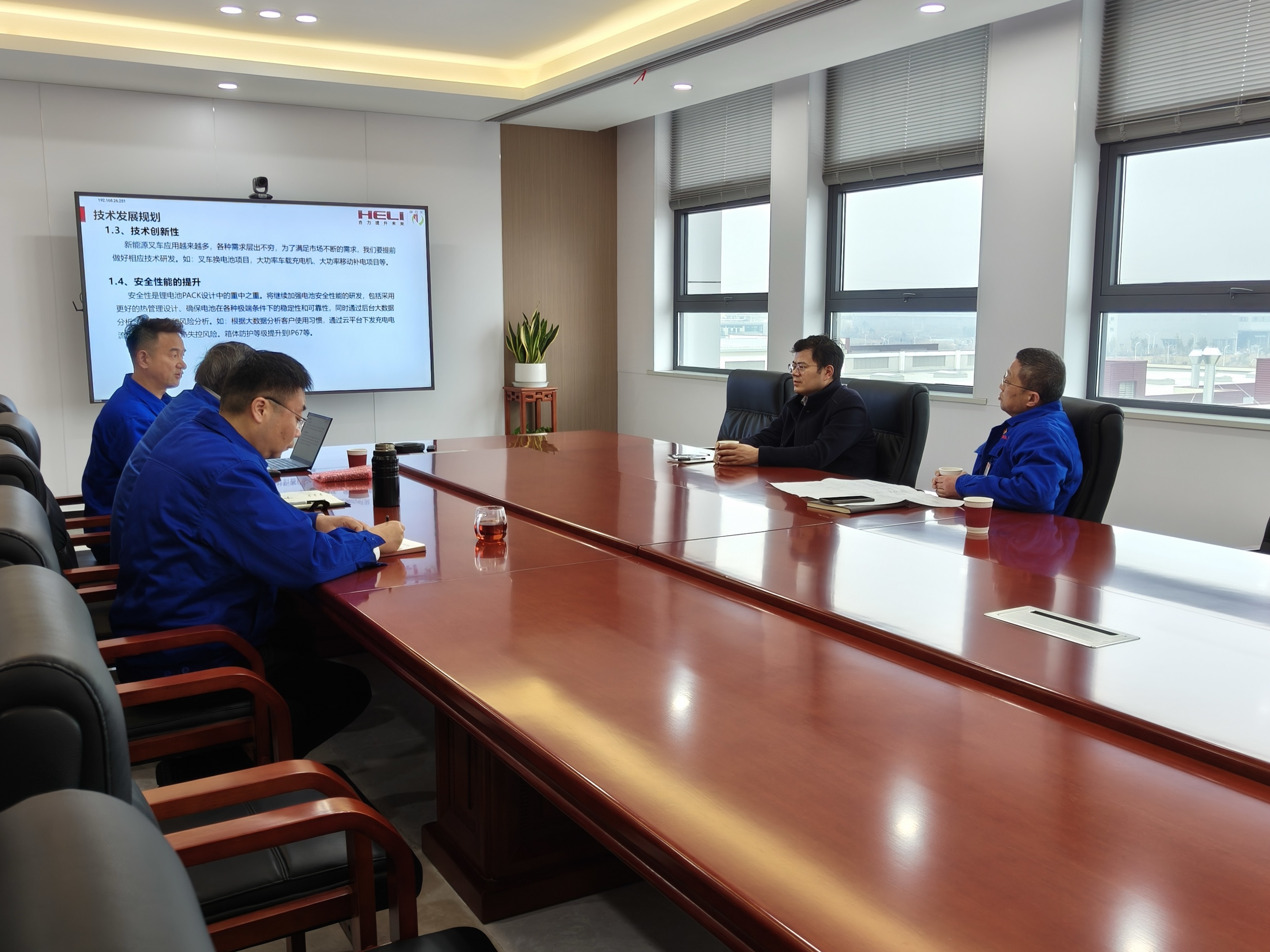 座谈会上,和鼎公司技术科科长王志海详细汇报了和鼎公司动力电池技术标准化建设及新产品开发应用情况。毕胜指出,和鼎公司近年来发展态势稳中向好,多项工作具有前瞻性和创新性,对和鼎公司在技术创新上的发展给予了充分的肯定并提出以下几点要求:一要牢牢把握数字化转型升级,深化大数据分析应用布局,持续加强电池云平台智能预警体系建设,实现监测异常精准研判、风险隐患及时干预,不断增强数据安全保障能力;二要加速推进BMS多场景落地应用,强化核心技术攻关团队建设,持续加大研发经费投入,着力提升核心技术创新能力;三要密切关注政策导向,及时享受国家政策补贴,加强与研究所技术交流合作,加速对固态电池、钠离子电池等前沿技术研发投入,面对欧洲电池法等国际法规,提前布局谋划电池梯次利用与再生技术研发,打造资源循环利用示范样板。
