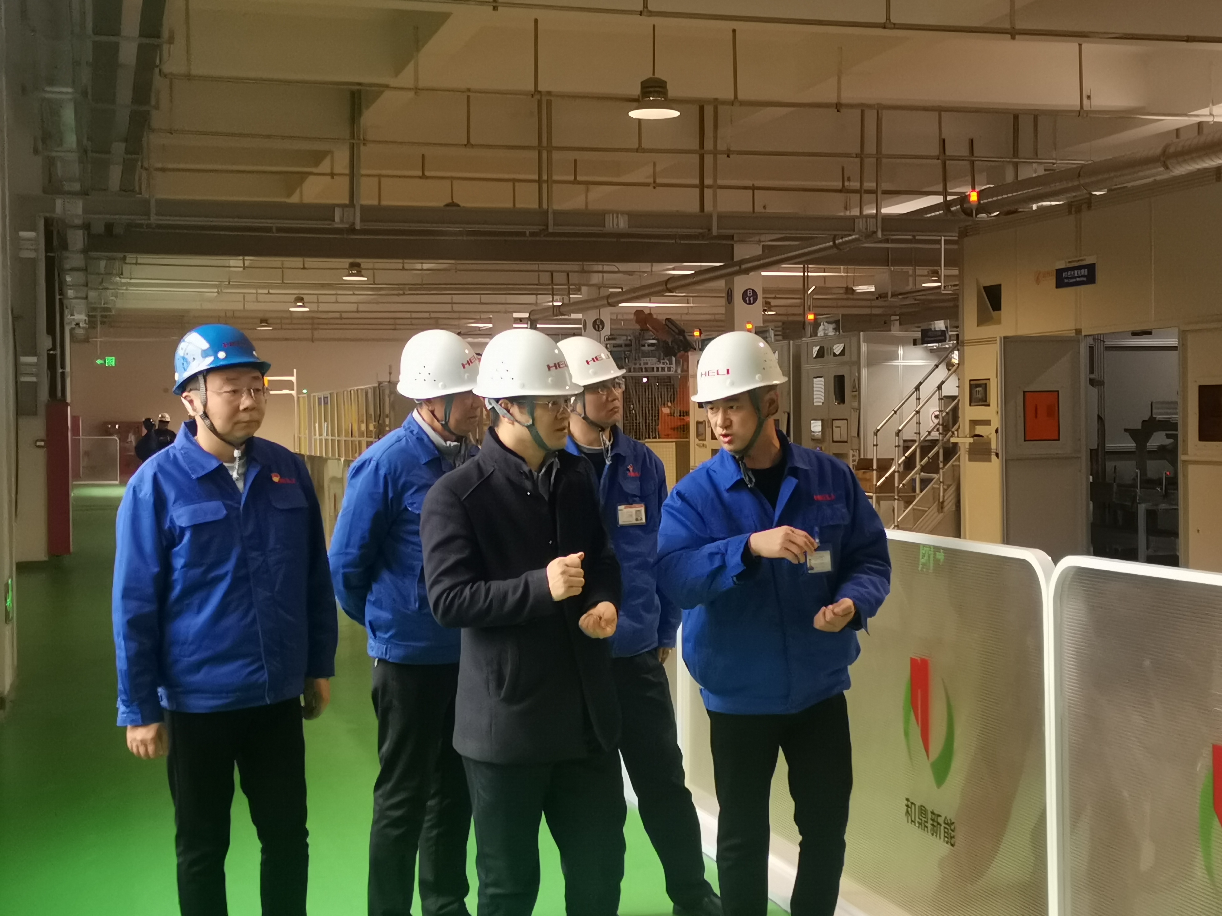 毕胜一行走进和鼎公司锂电生产车间现场,实地查看了自动化模组生产线及PACK生产线的生产运行情况,详细了解了生产工艺流程、设备设施安装调试、锂电技术创新以及新工厂生产运营情况。