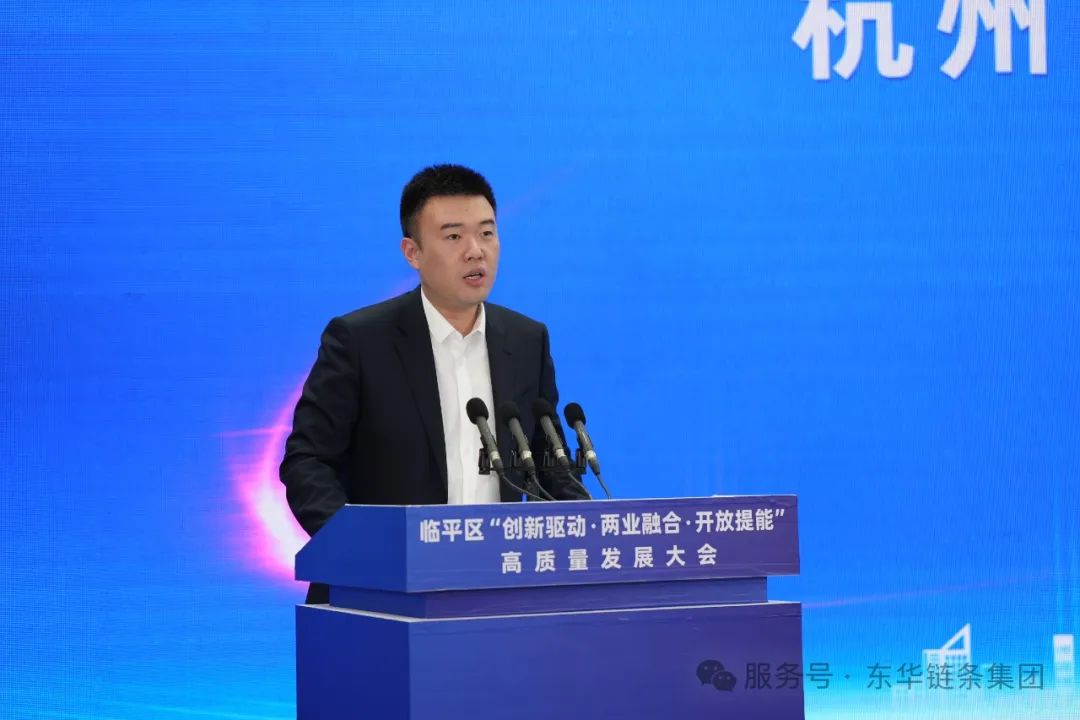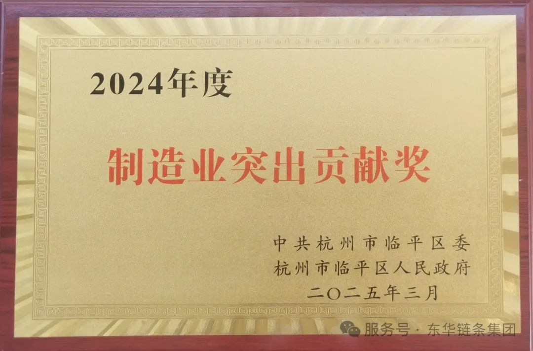 会上颁发了2024年度临平区经济发展卓越贡献奖、制造业突出贡献奖、服务业突出贡献奖等五项奖。东华链条获评临平区“制造业突出贡献奖”。