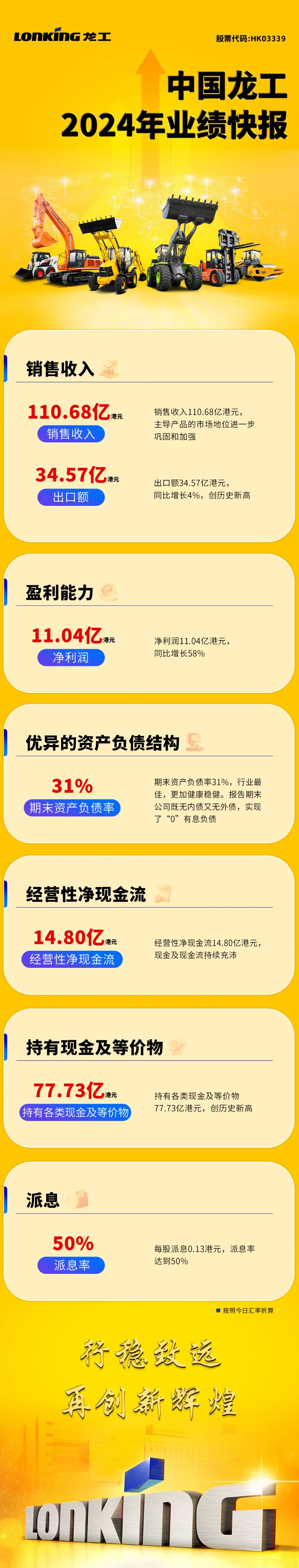 中国龙工控股有限公司,简称“龙工”,系由第十一届全国人大代表、全国劳动模范、优秀中国特色社会主义事业建设者李新炎先生于1993年在福建龙岩创立的一家大型工程机械制造企业;2005年率中国工程机械行业之先在香港主板上市(股票代码:3339);2009年公司综合实力跃居全球工程机械行业第24位;营业利润率增幅全球第四,销售额增幅全球第五,平均资产回报率全球第六。