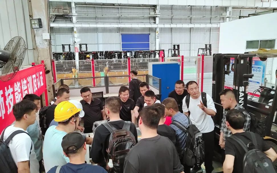 来自全国各地的三十余位一线服务工程师,在培训期间学习了CRM系统操作、叉车结构原理、电气系统、电池与充电机维护等核心理论课程,并深入车间强化车辆维修保养、故障诊断等技能。最后,全员参加了理论考试及实操认证考试,确保培训效果,持证上岗。