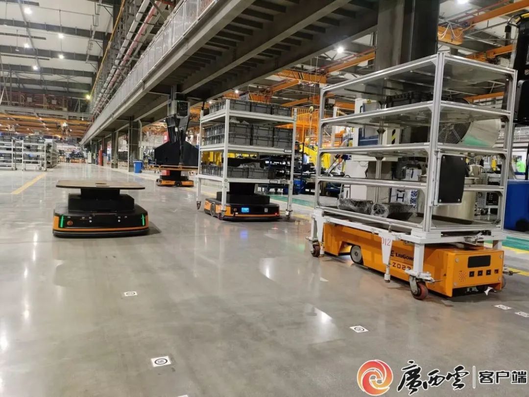 走进广西柳工机械股份有限公司(以下简称柳工)智能装载机智能工厂装配车间,浓浓的科技气息扑面而来,一辆辆AGV自动运输车往来穿梭、智能立体库有序吞吐零部件、空中EMS输送线高效配送物料……“地下、地面、空中”三位一体的智能物流体系高效运作,未来感十足。