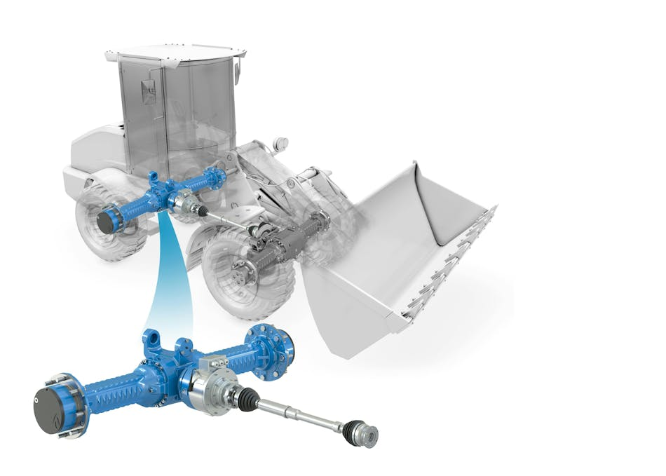 适用于 5 吨以下紧凑型电动轮式装载机的动力系统是将在bauma 2025上展出的新产品之一。动力系统由一个名为 eMD1 的新电动模块组成,该模块将动力直接输入到刚性紧凑轴的差速齿轮箱中,从而消除了传动系统中的传统减速箱。行星驱动装置降低电机的转速,并通过等速轴将旋转和扭矩运动传递到前轴。