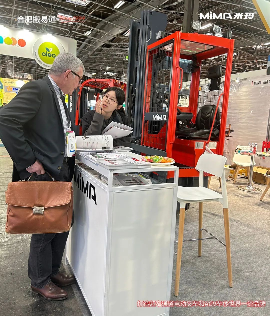 展会期间,MiMA展位吸引了来自全球各地的观众驻足交流,他们对MiMA的新款多种应用场景的AGV无人叉车车体表示了浓厚的兴趣,并针对仓储空间利用率不足、货物转运效率低等行业普遍痛点展开咨询。MiMA专业销售工程师热情接待,不仅为他们详细讲解产品性能,还针对各种物流搬运难题,给出专业解决方案。