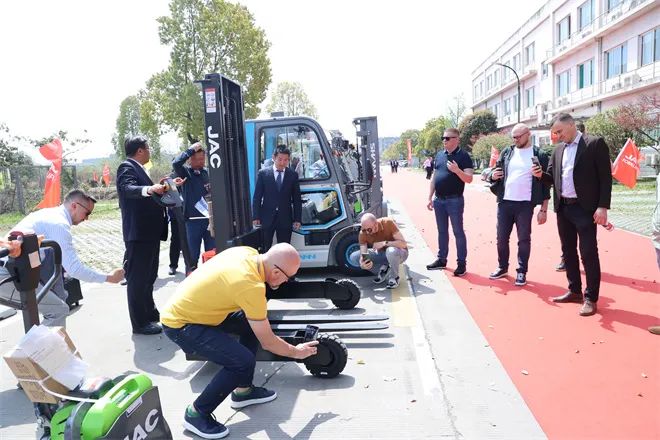 江淮重工厂区内,多款拳头产品整装列队等待着俄罗斯经销商的来访:新能源高压锂电产品、专用锂电车系列产品、大吨位系列产品、仓储车系列产品……全面展示了江淮重工的最新研发成果。俄罗斯经销商对重点车型现场试乘试驾,在带载、坡道启停等试验测试后,对于车辆综合性能及人机工程性给予了高度评价,并达成批量意向订单。