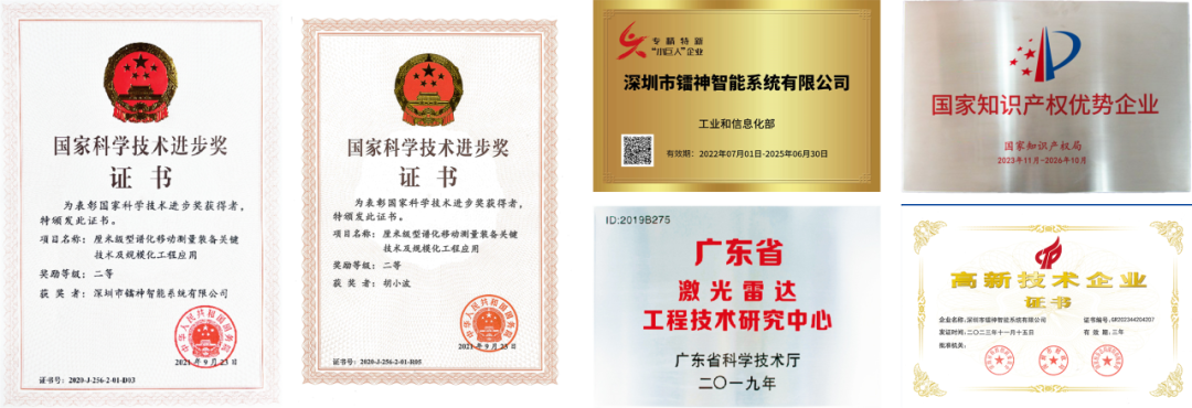镭神智能始终坚守“专业 · 创新 · 品质”,经过8年的努力得到了国家及省级政府的认可,荣膺2020年度国家科技进步二等奖,是国家工信部评选的新一代人工智能产业创新重点任务揭榜优胜单位,入选国家级 “专精特新”小巨人企业名单,是广东省唯一一家激光雷达工程技术研究中心。