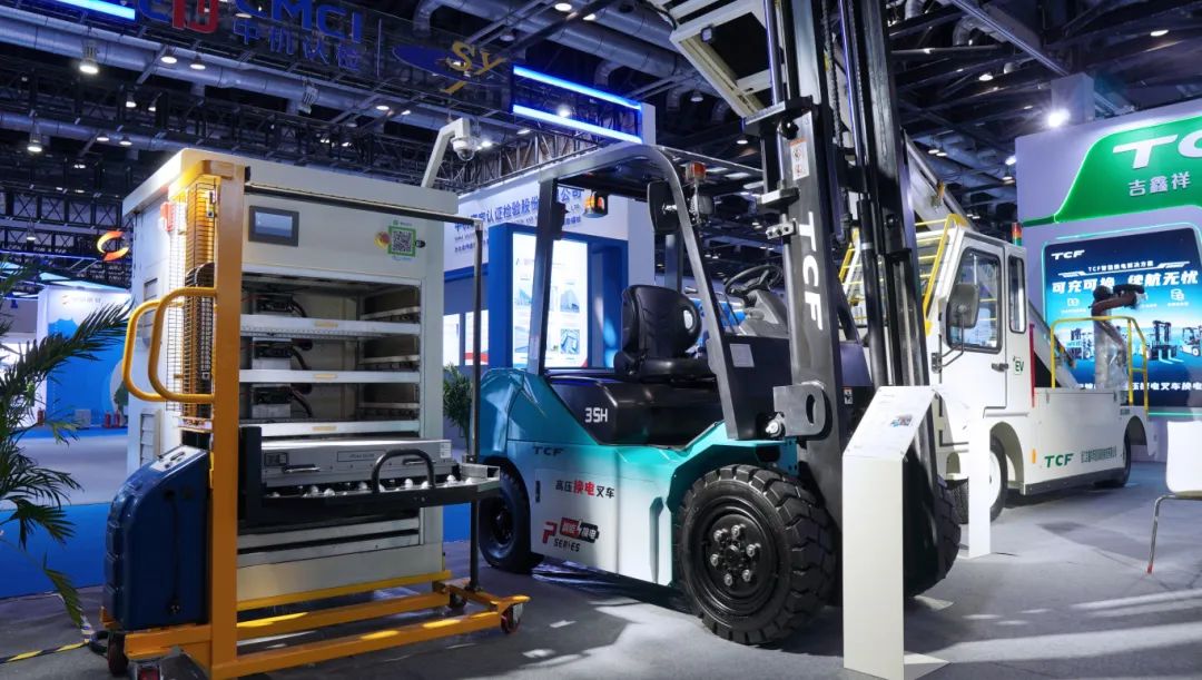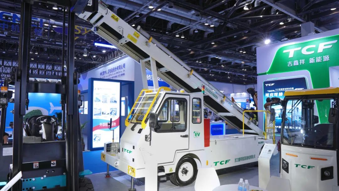 TCF全系列电动叉车、民航地面设备,均可提供“换电版”车型,仅需3分钟就可以完成叉车换电,5分钟完成民航车辆换电,支持客户部署“光伏储能一体式换电站”,解决新能源车辆的能源补给需求,为机场高频率、高负荷的物流作业节省大量的充电时间,实现能源的高效利用和优化配置。