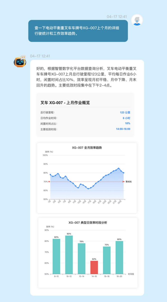想象一下,分析车队效能不再需要翻阅报表,而是与一位“经验丰富的虚拟分析师”对话: