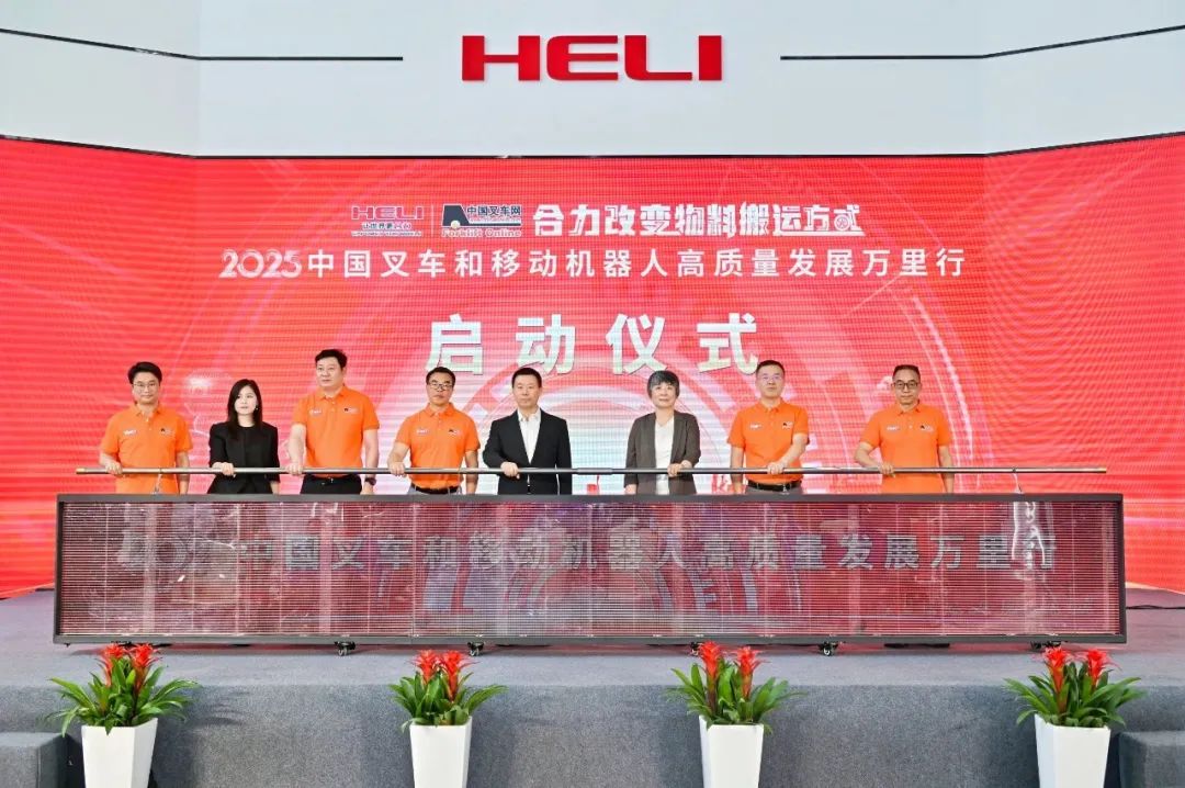 启动仪式上,中国工程机械工业协会工业车辆分会秘书长张洁、合力股份副董事长薛白、中叉网总经理胡扬波、优旦科技董事长彭勇俊等嘉宾共同开启“合力改变物料搬运方式—合力 • 中叉网 | 2025中国叉车和移动机器人高质量发展万里行”活动。