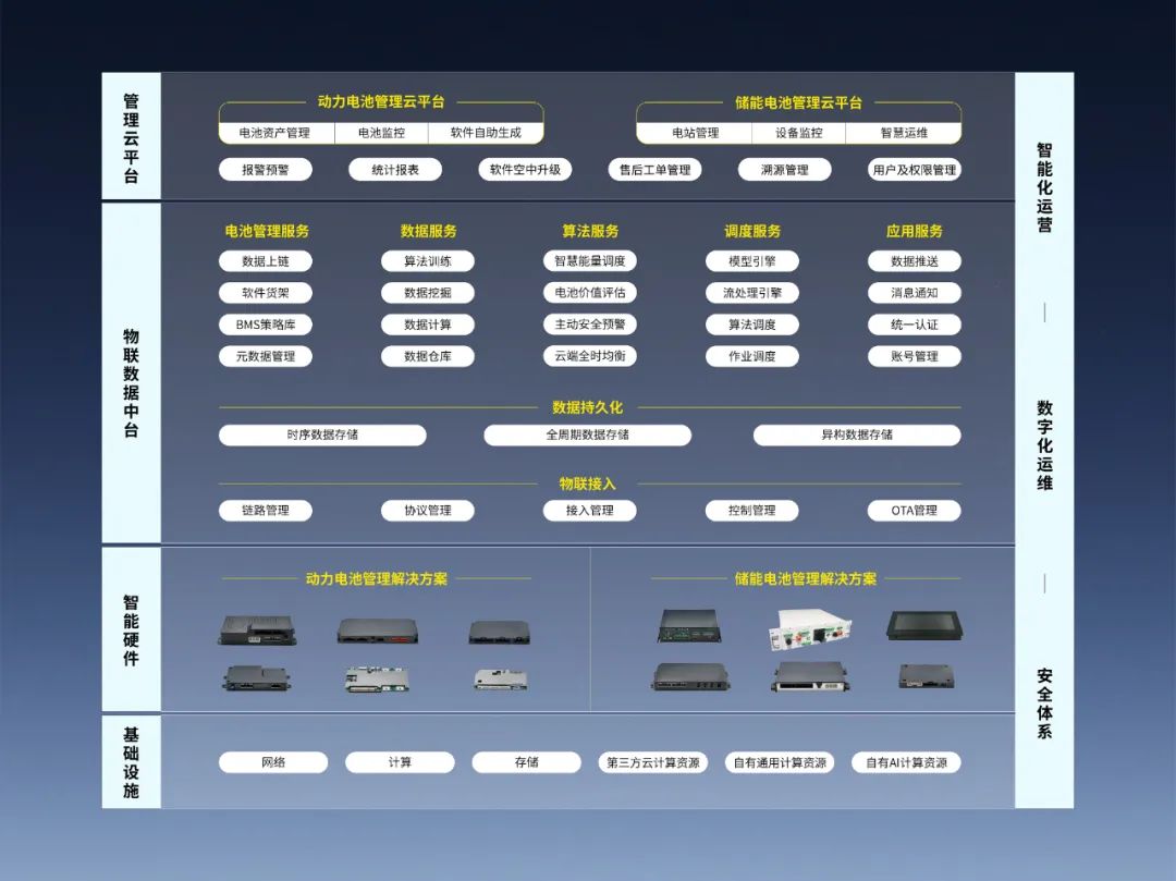 公司创立之初即提出锂电池智能管理理念,倡导让锂电池永远在线。基于先进的iBMS/iEMS智能硬件、强大的电池PaaS平台和创新型SaaS应用,实现数据驱动的锂电池云端协同管理、主动安全管理和全生命周期智慧运营管理,让每一块锂电池安全、高效运行。