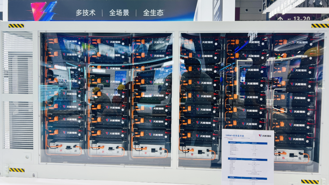 在储能展区的液冷储能系统模型前,技术人员正讲解着铁锂储能系统的双维创新。在硬件层面,采用纳米级包覆技术的铁锂电芯,配合立体散热结构实现系统级安全防护。软件创新更具前瞻性,搭载自适应能量管理算法的BMS系统,可根据电网负荷智能切换削峰填谷模式,提升储能系统综合能效。