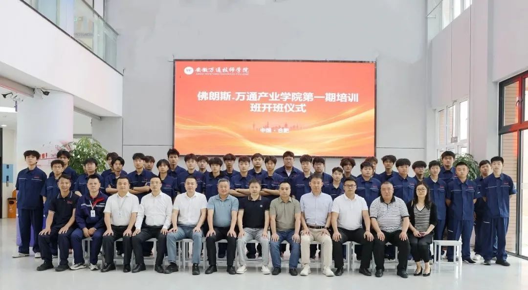 2025年5月23日上午,佛朗斯·万通产业学院第一期培训班开班典礼在安徽万通技师学院隆重举行。此次典礼汇聚了来自广州佛朗斯股份有限公司与中国东方教育集团的多位领导,以及安徽万通技师学院的师生代表,共同见证了这一重要时刻。