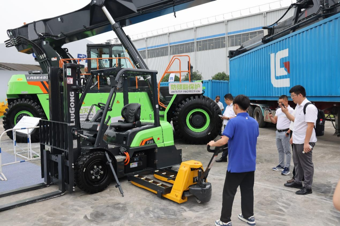 2024年柳工海外销售收入再创新高,电动产品已成功进入欧美市场。本次客户节上,来自东南亚、南美及欧洲的客户对柳工新能源叉车和正面吊表现出浓厚兴趣,部分客户现场达成采购意向。