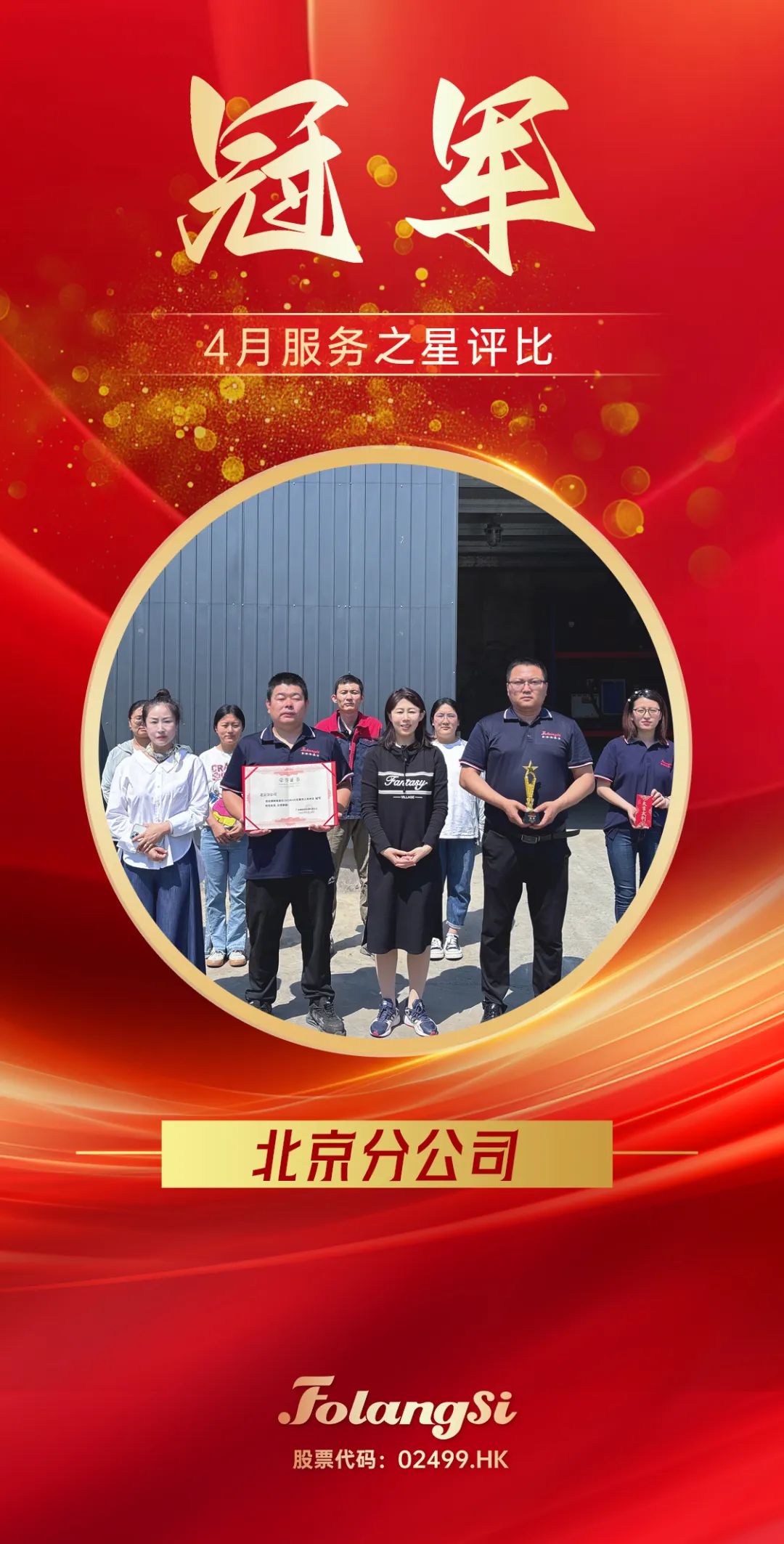 在过去的4月,佛朗斯股份北京分公司凭借出色的表现,在 “服务之星”评比中脱颖而出,荣获冠军桂冠。这一荣誉不仅是对北京分公司全体员工勤勉奉献的高度肯定,更是对公司“服务至上,客户为先”核心理念的生动实践与最佳诠释。