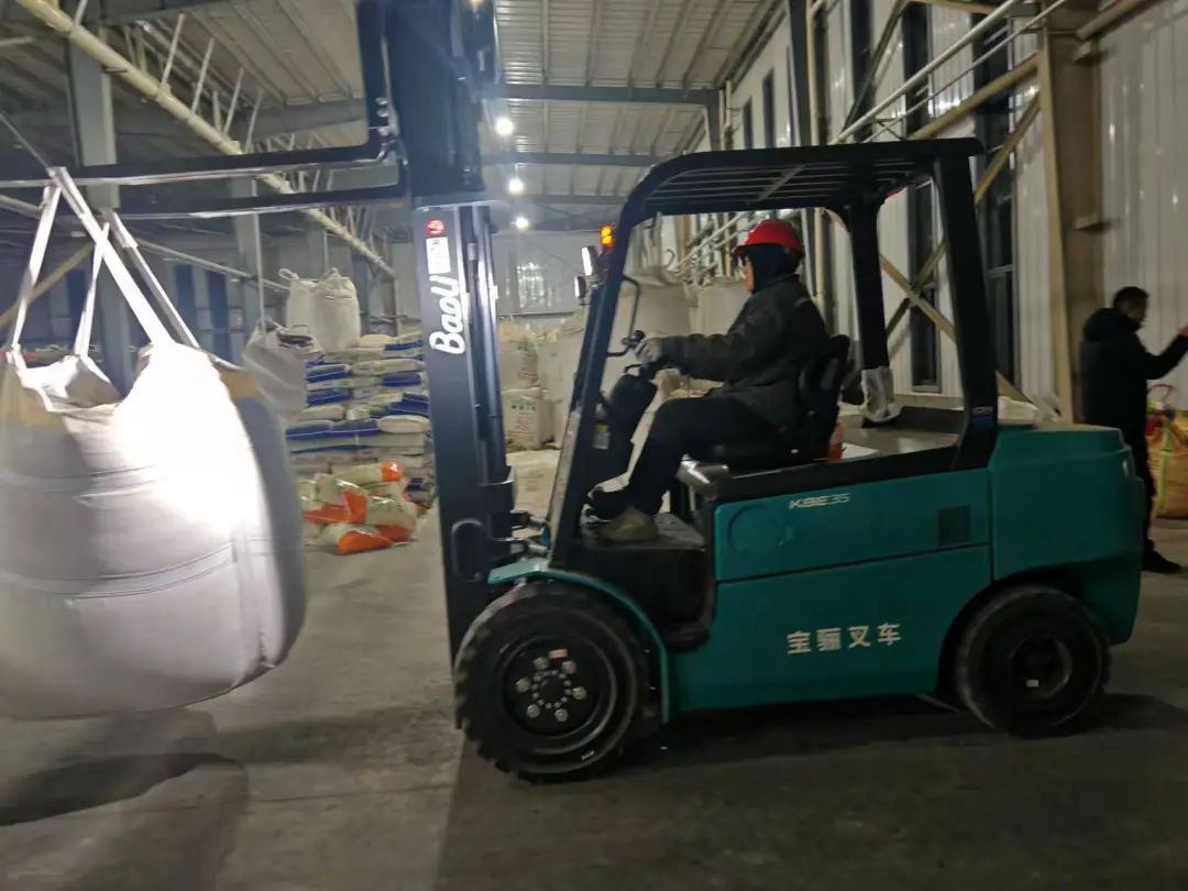 实力才是硬道理。在客户企业的新厂区,需要叉车完成化肥原料吨包在各环节间的周转,这就要求叉车能够稳稳托举1吨标准吨袋,实现高效搬运流转,同时还能抗住连轴运转的高强度作业模式。