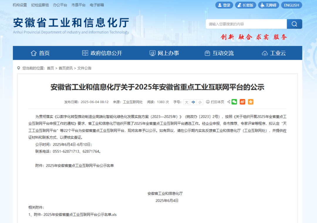 6月4日,安徽省经济和信息化厅公布了2025年安徽省重点工业互联网平台名单,经企业申报、各市推荐、专家评审等程序,认定蔚来汽车、江淮汽车、优旦科技等22家企业的工业互联网平台为安徽省重点工业互联网平台。