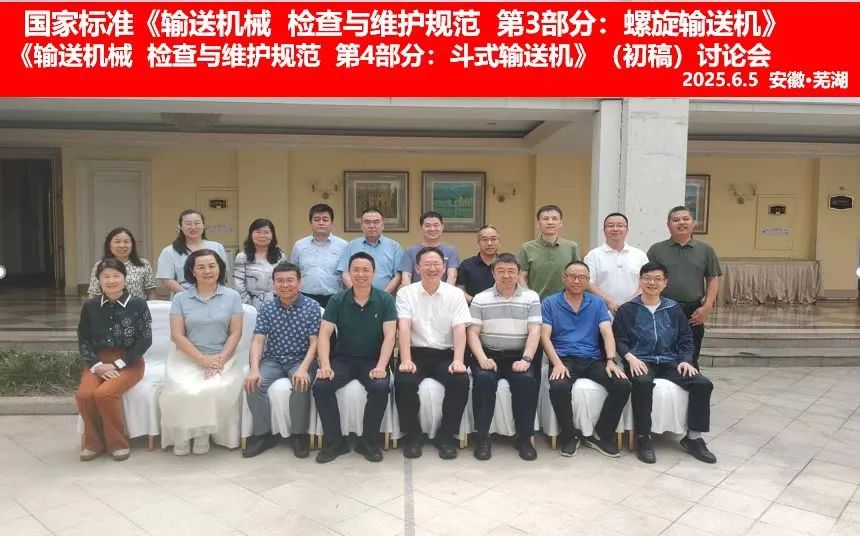 2025年6月4日至6日,全国连续搬运机械标准化技术委员会(以下简称“连续搬运机械标委会”)在安徽省芜湖市组织召开了国家标准《输送机械检查与维护规范第3部分:螺旋输送机》《输送机械检查与维护规范第4部分:斗式提升机》(初稿)讨论会。出席此次会议的有来自输送机械生产企业、使用单位和大专院校等方面的行业专家和部分连续搬运机械标委会委员,以及标准起草工作组成员共计19名代表。