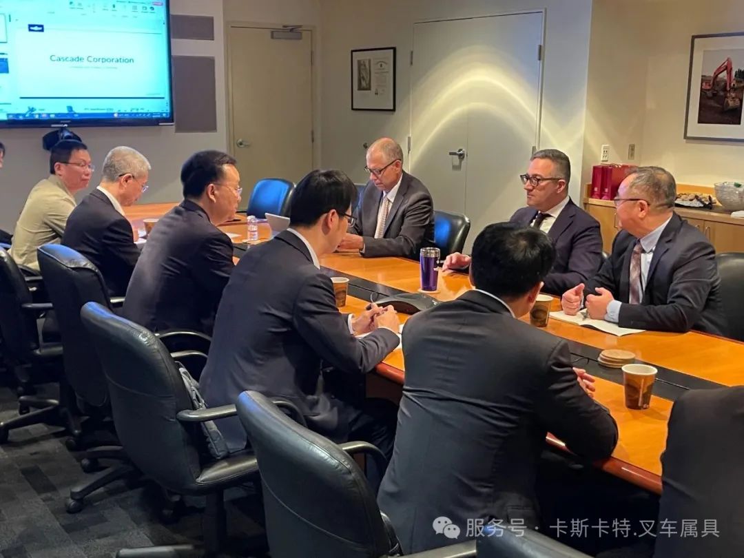 2025年6月3日,福建省人民政府副省长王金福率领代表团,到访位于美国俄勒冈州波特兰市的卡斯卡特公司全球总部。卡斯卡特公司总裁兼首席执行官Davide Roncari先生、中国和亚太区负责人Steve Keller先生及卡斯卡特(厦门)叉车属具有限公司人员一同热烈欢迎代表团的莅临来访。访问期间,双方进行了亲切友好的交流。