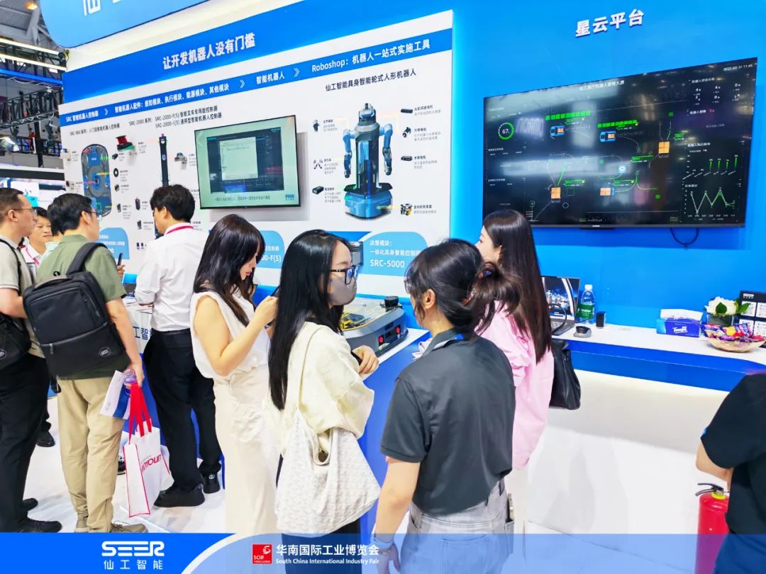 展会现场,仙工智能依托「智能机器人开放平台」,全方位展示覆盖机器人开发、获得、使用全流程的核心成果,让智能机器人没有门槛。
