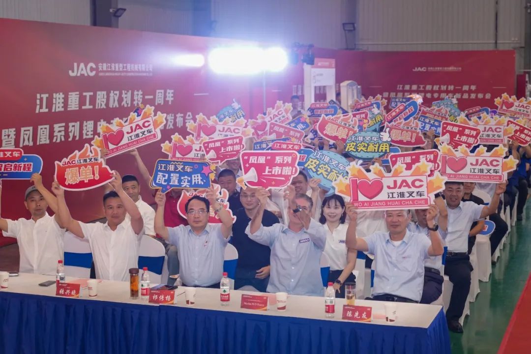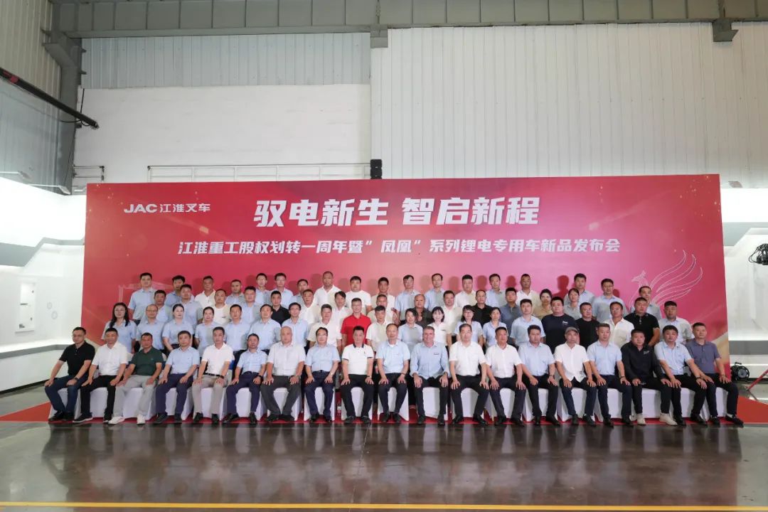 一年砥砺铸辉煌,今朝扬帆再启航!在江淮重工股权划转至安徽叉车集团一周年这一重要历史节点,为全面总结一年来在叉车集团党委坚强领导下取得的高质量发展成果,进一步凝聚奋进力量,2025年6月28日,江淮重工隆重举行股权划转一周年暨“凤凰”系列锂电专用车全球首发仪式。安徽合力股份有限公司党委委员、副总经理、江淮重工党委书记、董事长陈先友,江淮重工党委副书记、总经理姜文东携经营管理团队与全球战略合作伙伴代表、用户代表、媒体同仁共计150余人齐聚一堂。