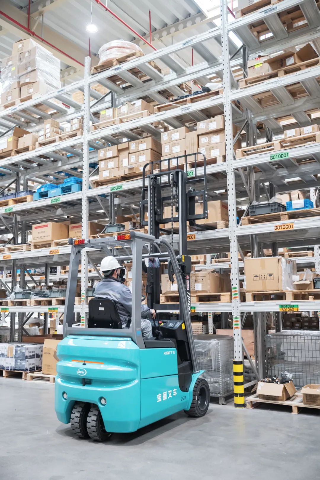 立库、窄道等空间限制情景,如同刁钻的几何附加题,是对搬运工具的灵活度与精准度的极致考验,宝骊KBET三支点系列正是狭小空间的解题圣手!