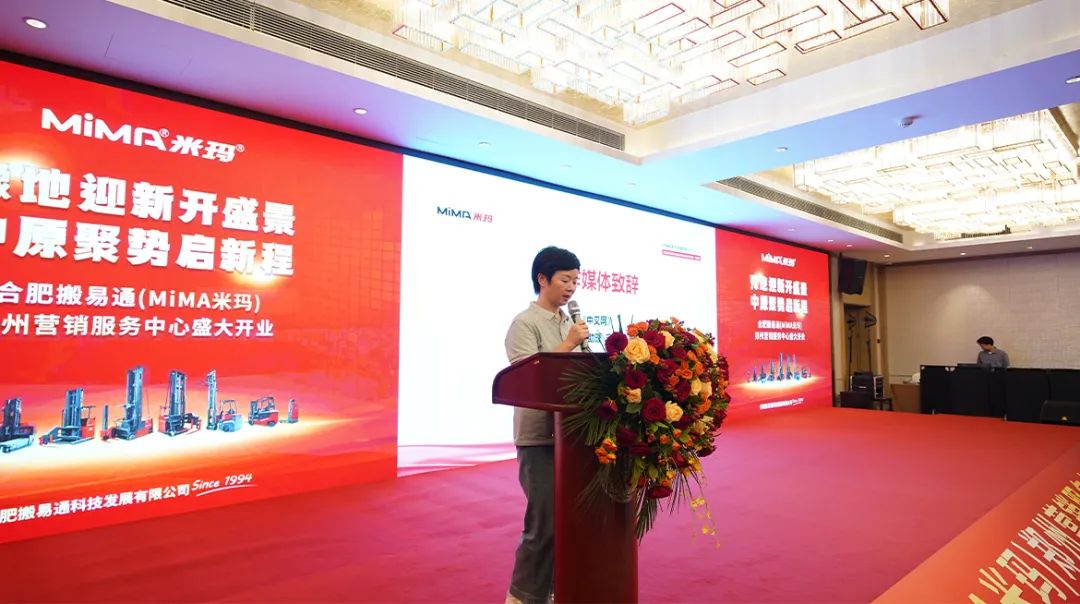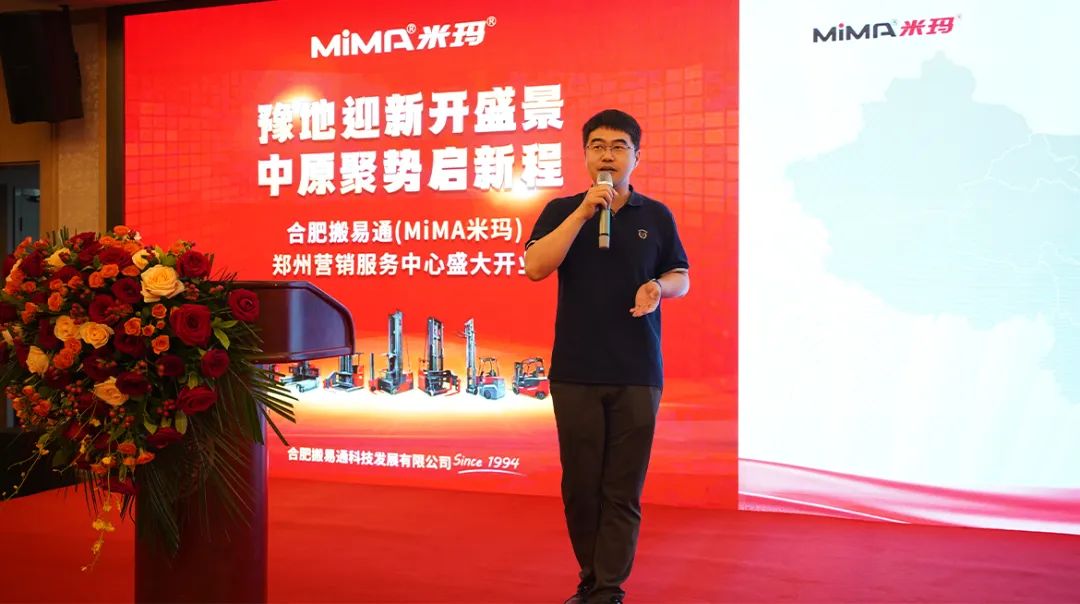 郑州营销服务中心负责人陈安在开业致辞中首先对各位到场来宾表示了热烈欢迎,接着他表示:“郑州作为全国重要的物流枢纽,是合肥搬易通(MiMA米玛)布局中原市场的战略要地。我们将依托本地化服务团队,为客户提供更高效、更及时的物料搬运解决方案……”