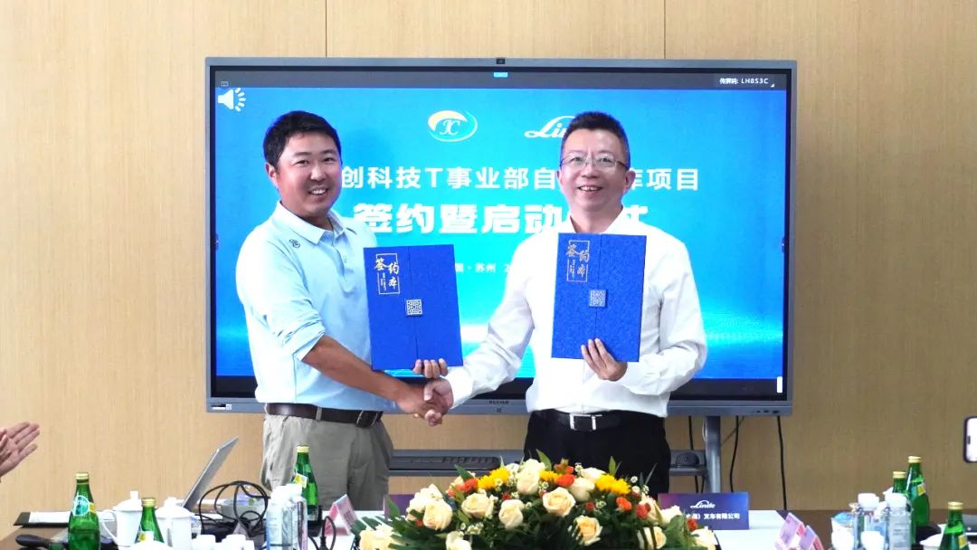 签约仪式上,现场气氛热烈。在双方代表的见证下,苏州骏创汽车科技股份有限公司董事长沈安居和林德(中国)江苏&上海区域总经理陈金平正式签署合作协议,标志着骏创科技自动化立库项目正式扬帆起航。