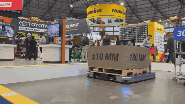 该产品标准负载 1000kg,1500kg 升级版本已通过 UL 认证,全面符合国际安全标准。其搭载的 AI 自适应系统,其搭载的 AI 自适应系统,可满足美标及欧标等不同类型的栈板,定制货叉方案,实现毫米级智能纠偏与精准叉取。