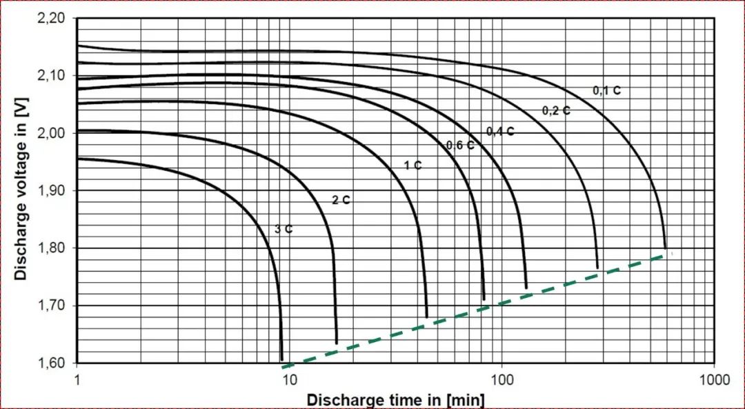 同样在此图中也可以看到在不同放电倍率下,对应的终止电压也是不同的。