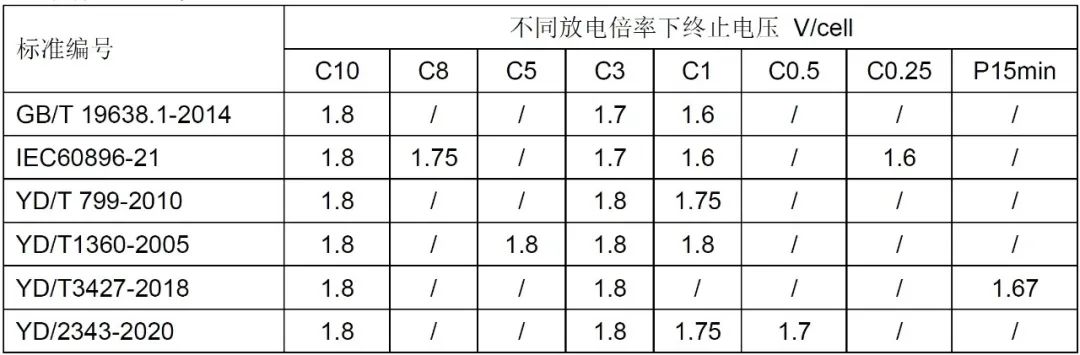 放电时间是核心因素。依据国家标准GB/T 19638.1-2014《固定型阀控式铅酸蓄电池 第1部分:技术条件》及国际电工委员会标准IEC 60896-21:2004《固定型阀控铅酸蓄电池 第21部分:阀控式类型 测试方法》的规定,对于放电时间需求超过5小时(C5)的应用场景,通常将放电终止电压设定为1.75V及以上。而对于放电时间在1小时(C1)以内的短时间应用需求,则更倾向于将放电终止电压设定为1.6V。这些标准被广泛采纳,并为相关行业标准提供了有益的参考。