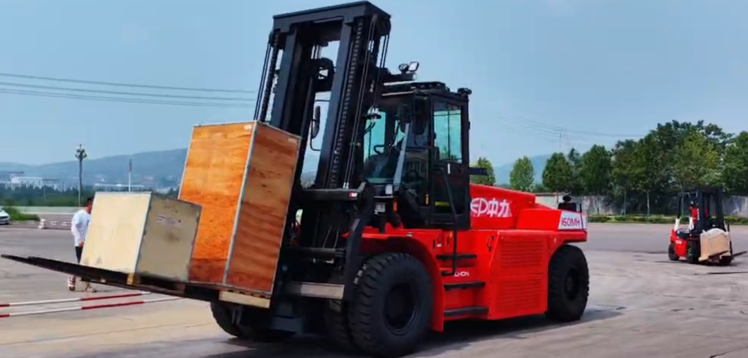 ▸针对客户现场的超重、超大尺寸物料,中力为客户提供16吨高压锂电叉车,永磁同步电机动力更强,行驶速度高达25km/h,爬坡度高达20%,载荷中心距1200mm,标配货叉长度2400mm,高效满足现场作业需求,并彻底解决原来小16吨叉车叉取超长超宽货物时的翘尾风险,轻松应对成品、半成品转运极限工况.!