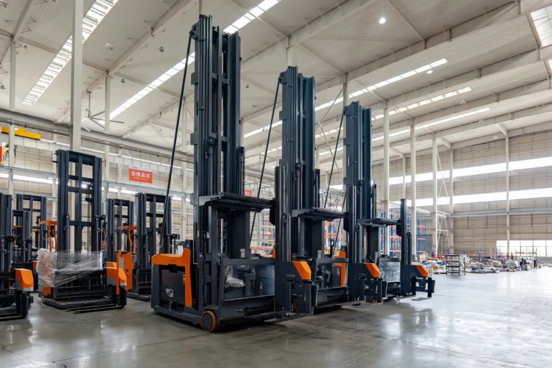 近日,卓一智能叉车首批四台18米人上行三向叉车正式下线,并发往欧洲。
