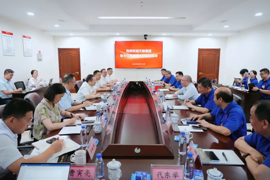 近日,天能控股集团董事长张天任率队赴安徽合力集团考察,与安徽合力股份党委书记、董事长杨安国等高层进行座谈交流。