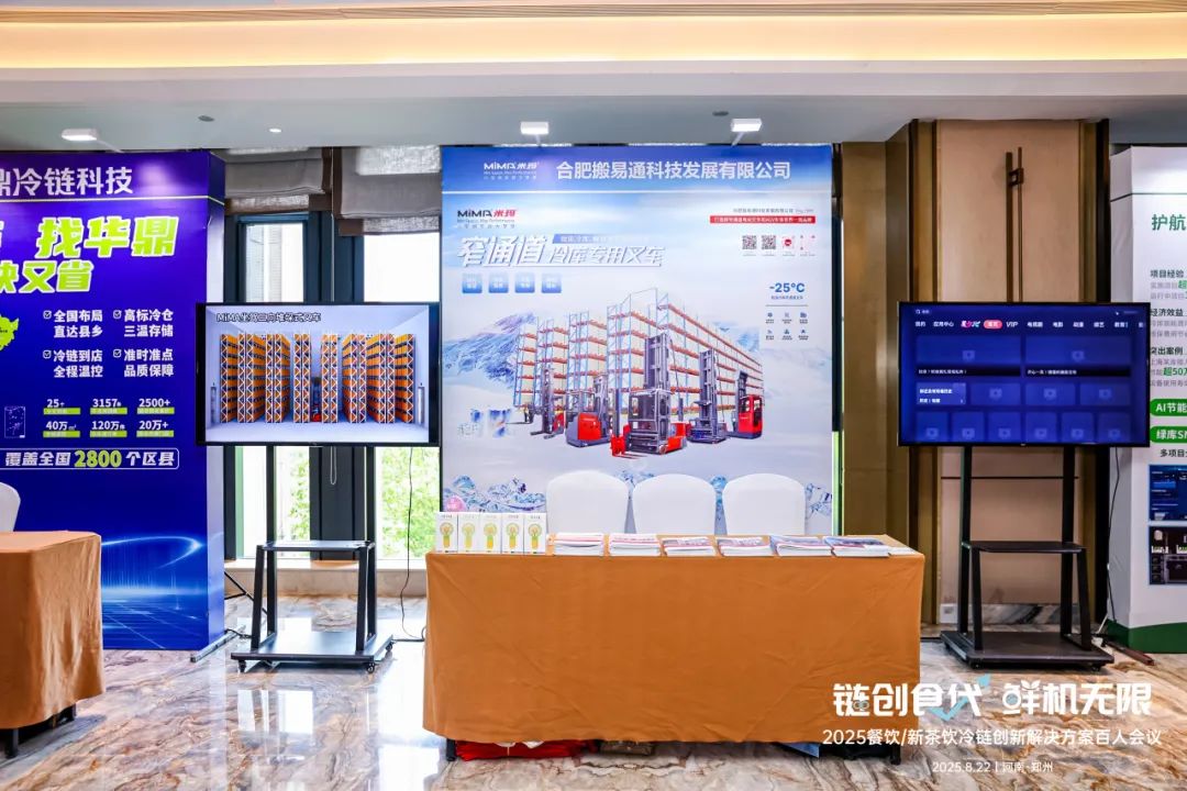2025年8月22日,由中国物流与采购联合会冷链专业委员会主办的“2025餐饮/新茶饮冷链创新解决方案百人会议”在郑州举办。会议以“链创食代·鲜机无限”为主题。汇聚知名餐饮/茶饮企业、生鲜农产品及食品、冷链运输、仓储、配送服务企业,冷链技术装备制造与服务企业等200余位代表参会,合肥搬易通(MiMA米玛)作为冷链仓储物流解决方案单位受邀参加。
