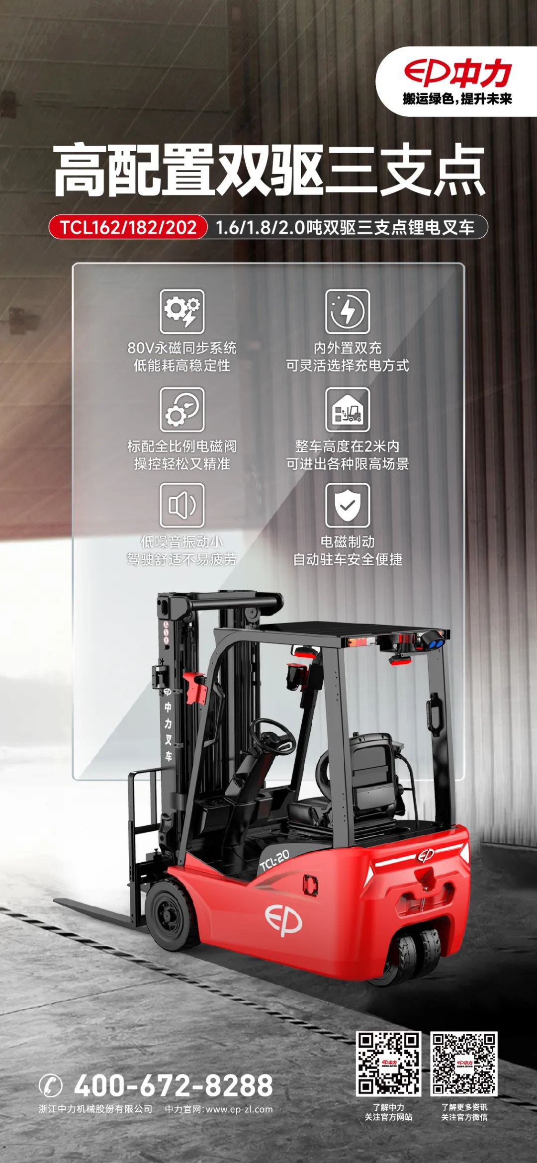 杭州中力搬运设备有限公司为浙江中力机械股份有限公司下属全资子公司,浙江中力机械股份有限公司(EP EQUIPMENT) 是一家靠产品驱动发展、创新引领变革,旨在打造工业物流4.0的全球化科技企业,专业从事电动仓储设备、智能搬运机器人及叉车开发、制造及服务。